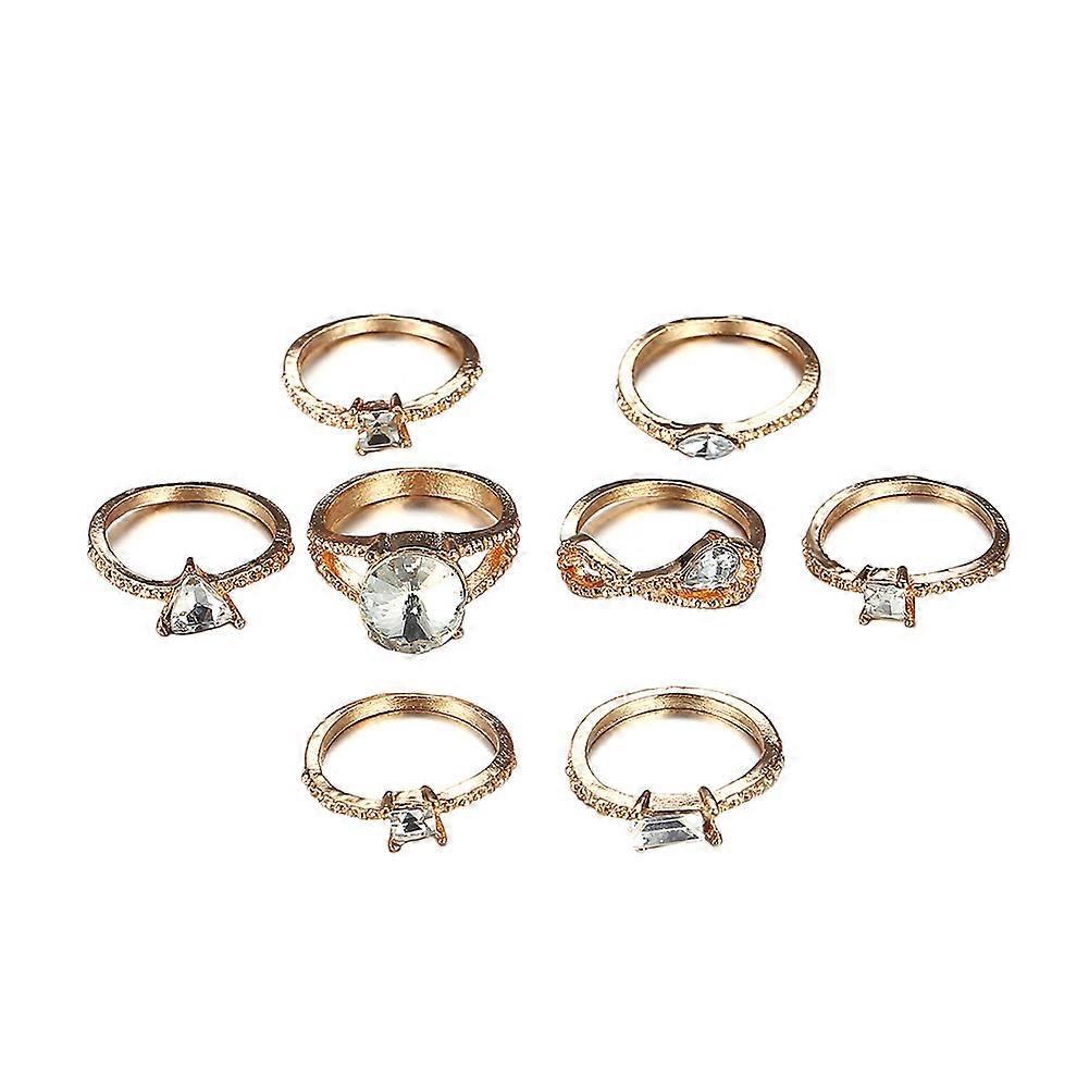8pcs Fashionable Alloy Gold Zircon Diamante Ring Jewelry Accessory Decor Nice Gift
