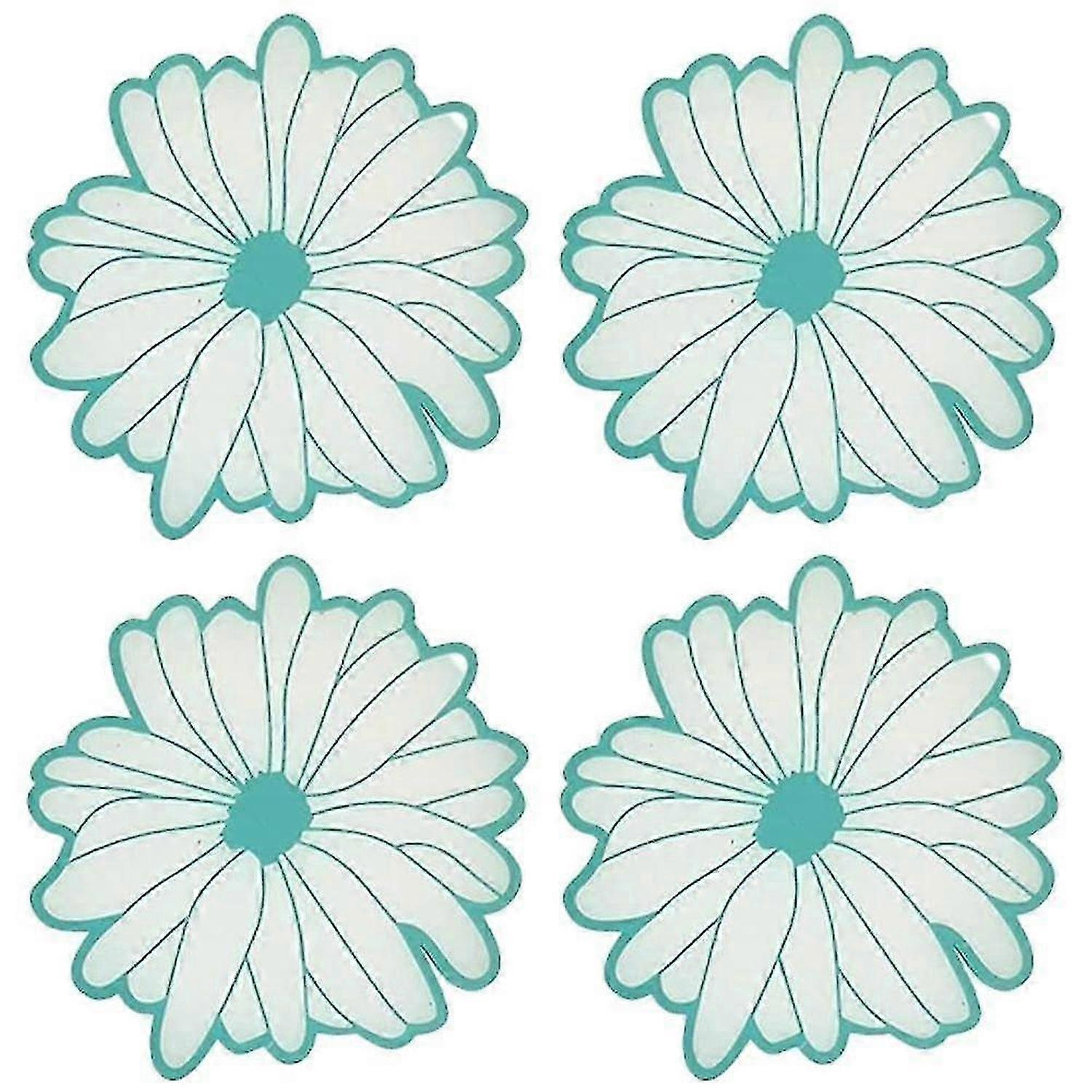 8PCS Floral silicone drink insulated coasters Washable and multi-purpose cute coastersblue