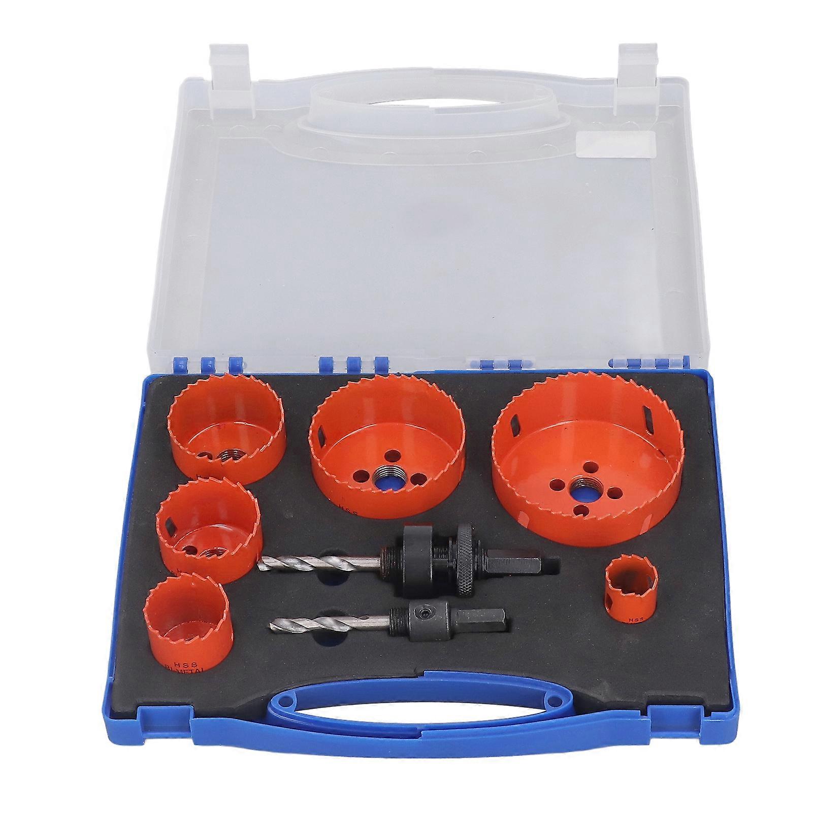 8PCS Hole Saw Kit Low Drilling Resistance Orange HSS Cutting Tools with Storage Box for Plastic