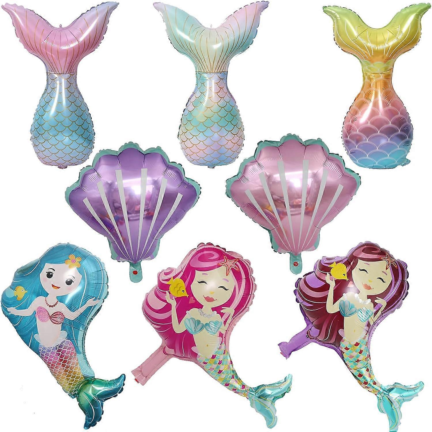 8PCS Mermaid Tail Balloons Seashell Balloons Mermaid Aluminum Foil Balloon Party Decorations for Mermaid Under The Sea Party Supplies