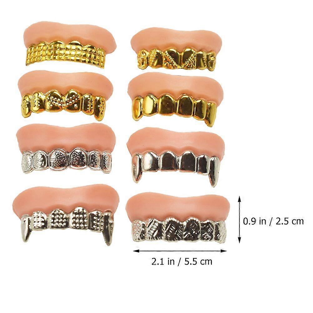 8pcs Plating Fake Teeth Fake Zombie Teeth Fake False Teeth Halloween Party Prop