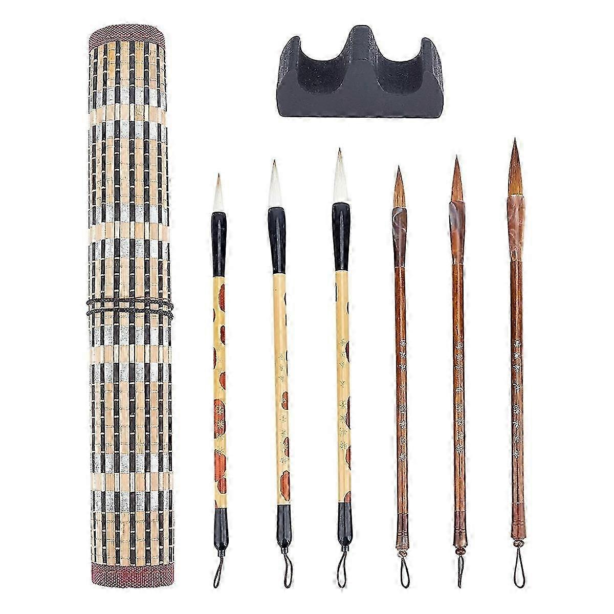 8PCS Chinese Calligraphy Brushes Watercolor Brushes Painting Writing Brush Brush Holder for Beginner