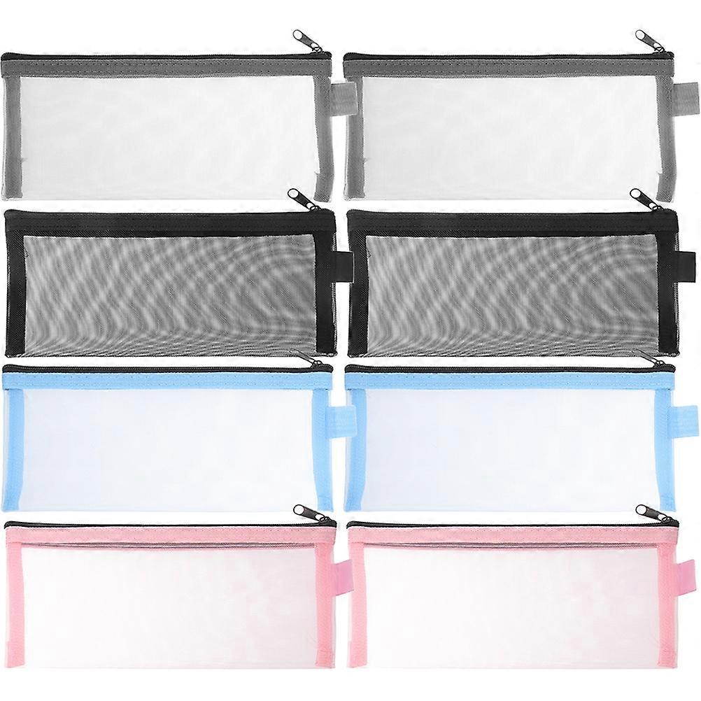 8PCS Multi Functional Pencil Organizer Bag, Durable Nylon Mesh, Black/Grey/Blue/Pink, for School, Art Supplies, and Office Use