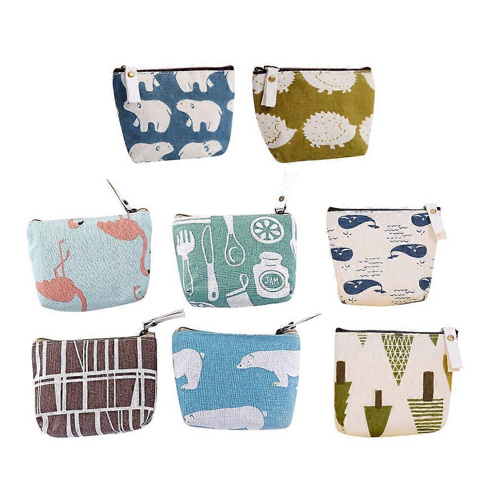 8pcs Cartoon Canvas Coin Bag Zipper Cash Bag Key Storage Bag for Girls Women (Random Style)