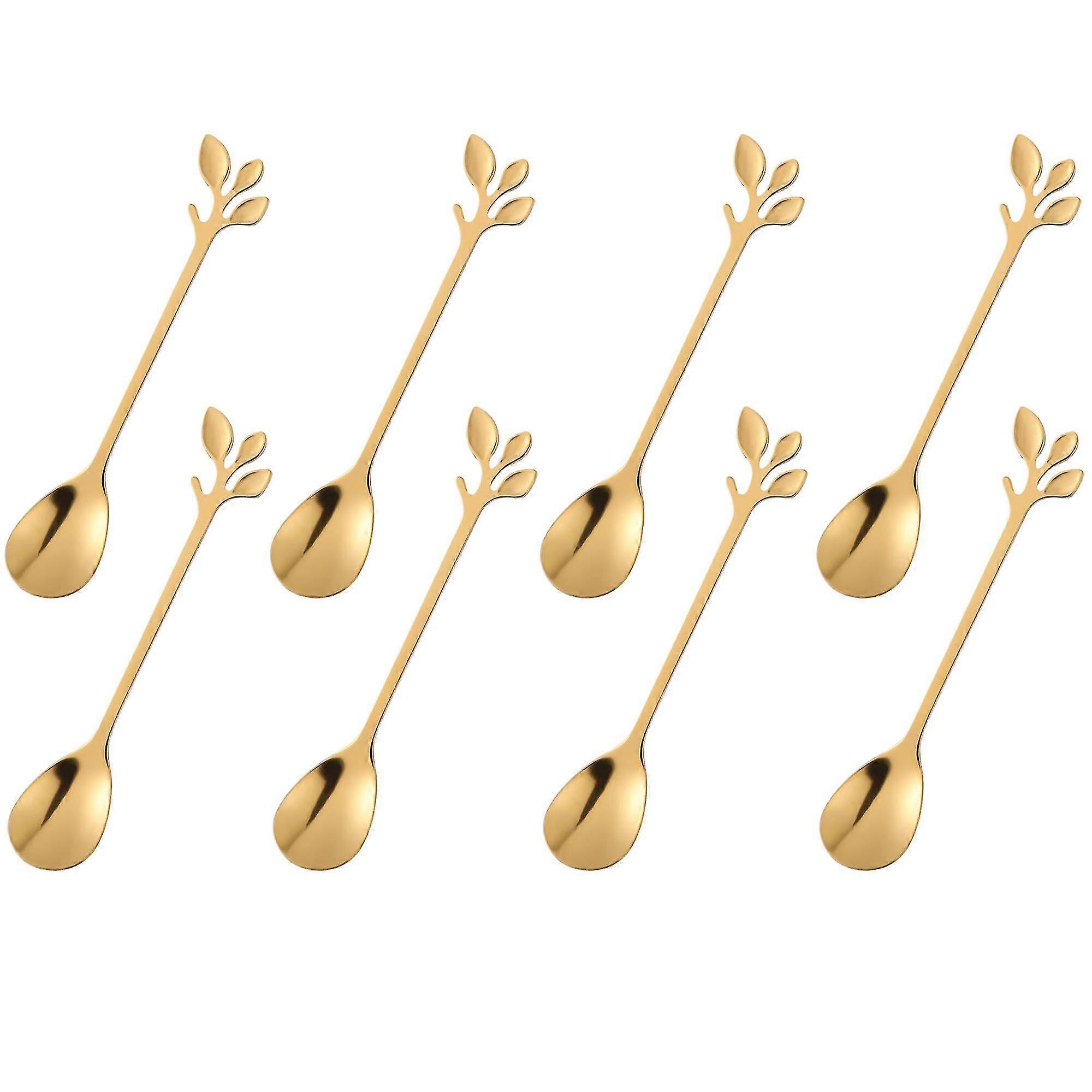 8pcs Gold Plated Stainless Steel Coffee Espresso Spoon, Tableware Dessert Teaspoons Small Soup Spoons, 4.9 inch Specialty Demitasse Stirring Spoons