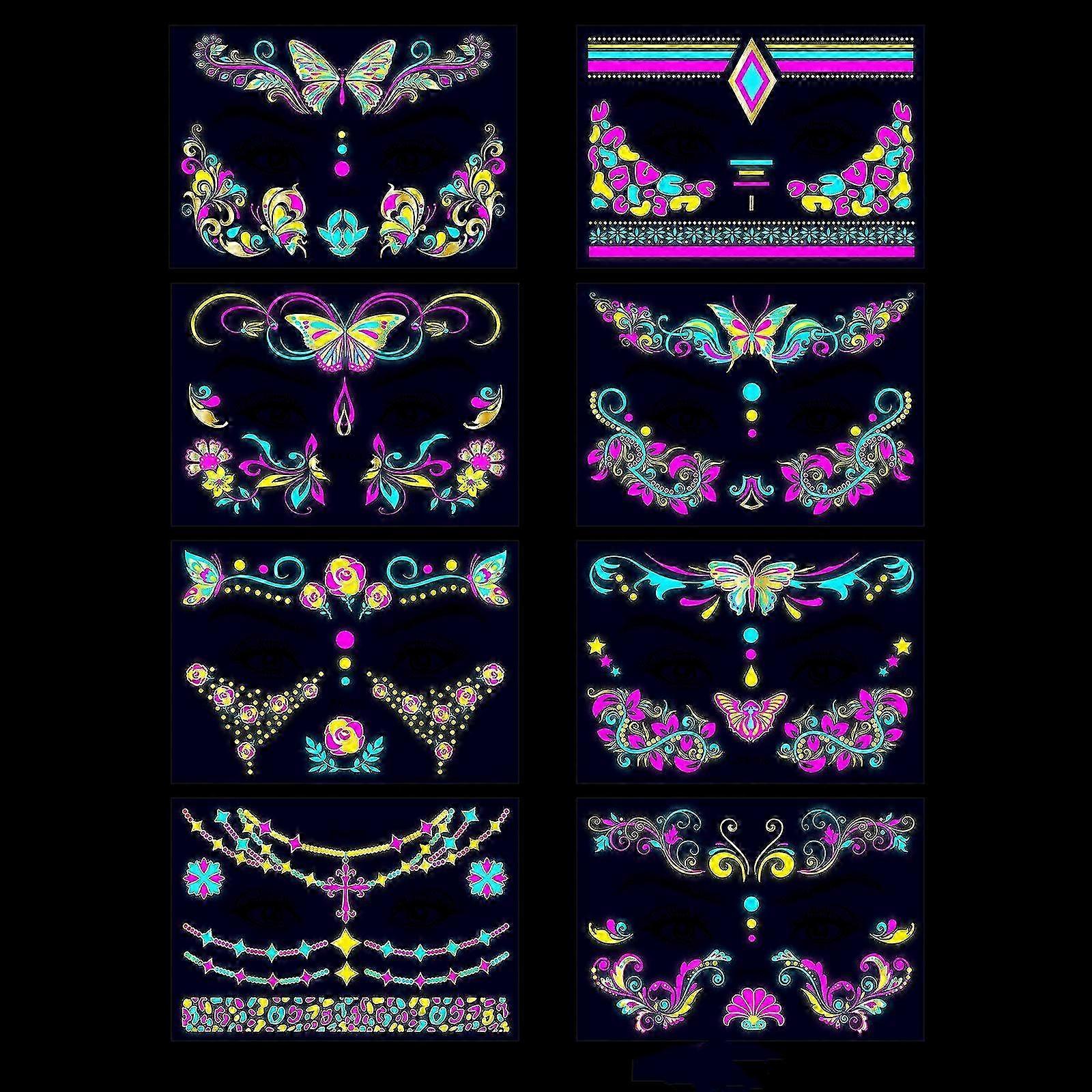 8pcs Music Festival Bronzing Powder Fluorescent Face Sticker Waterproof Nightclub Makeup Dance Neon Luminous Tattoo Sticker