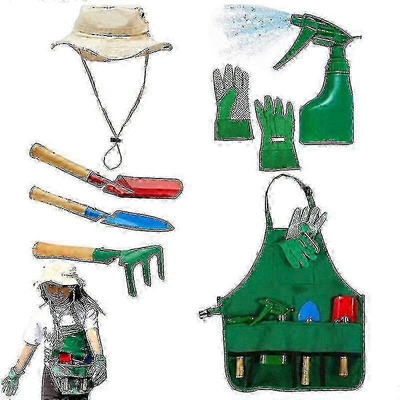 8PCS Garden Tools for Toddlers with Shovel, Rake, Hat & Apron