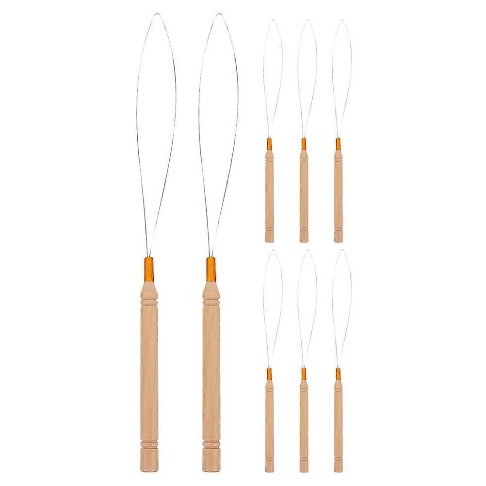 8pcs Wooden Handle Hair Extension Loop Needle Threaders Set Lightweight Bead Device Tools For Easy Hair Braiding And Styling For Salon And Home Use