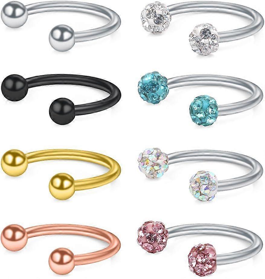 8PCS 20G Crystal& Shiny Ball Tiny Nose Septum Horseshoe Earring Eyebrow Lip Helix Tragus C