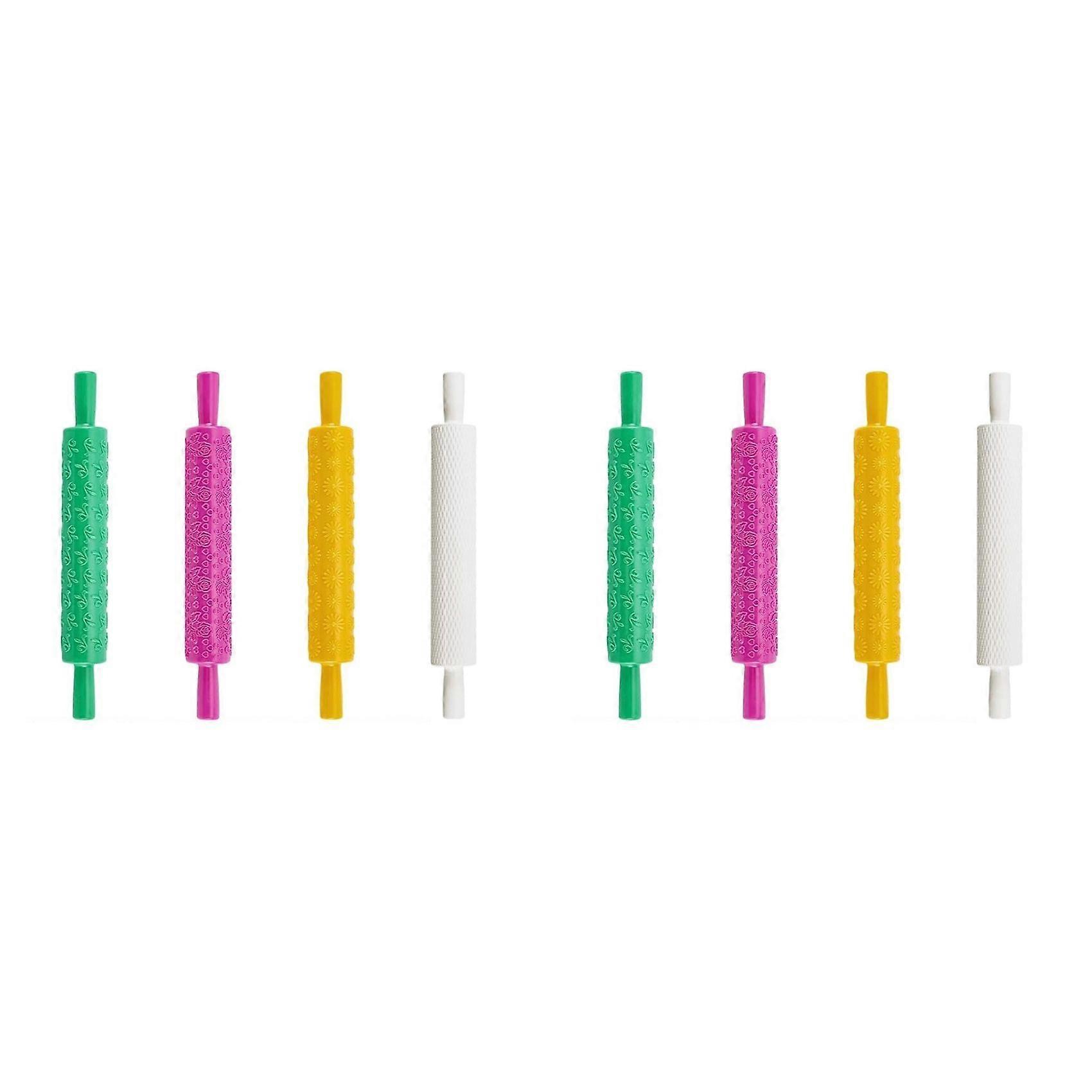 8Pcs Clay Modeling Pattern Rollers Kit 4 Colors Leather Texture Roller Plastic Rolling Pin Polymer Clay for DIY Handmade