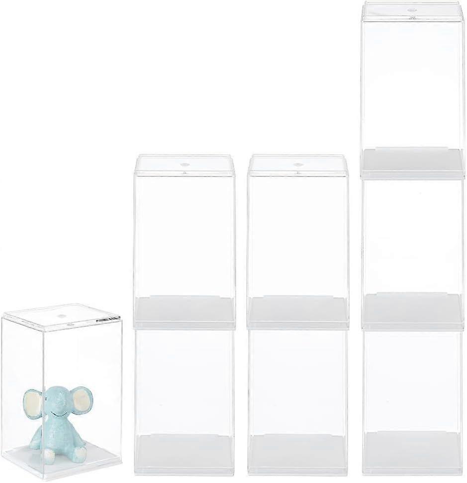 8Pcs Figures Display Case 2.5x2.2x4Inch Stackable Plastic Box Model Display Case with White Base Rectangle Clear Storage Box Plastic Storage Showcase