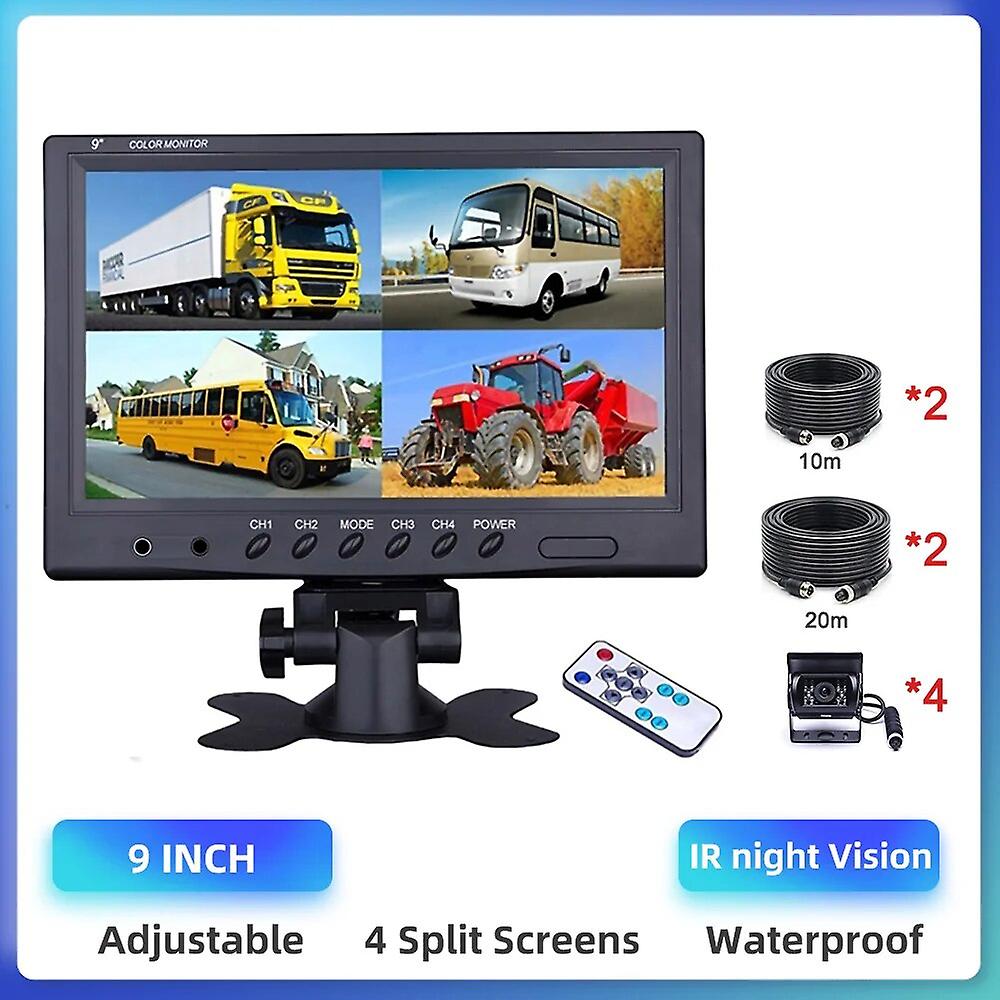 9" Wireless Monitor Split Screen Quad Night Vision 4ch Recorder Car Parking Rear View Surveillance System For Truck Bus