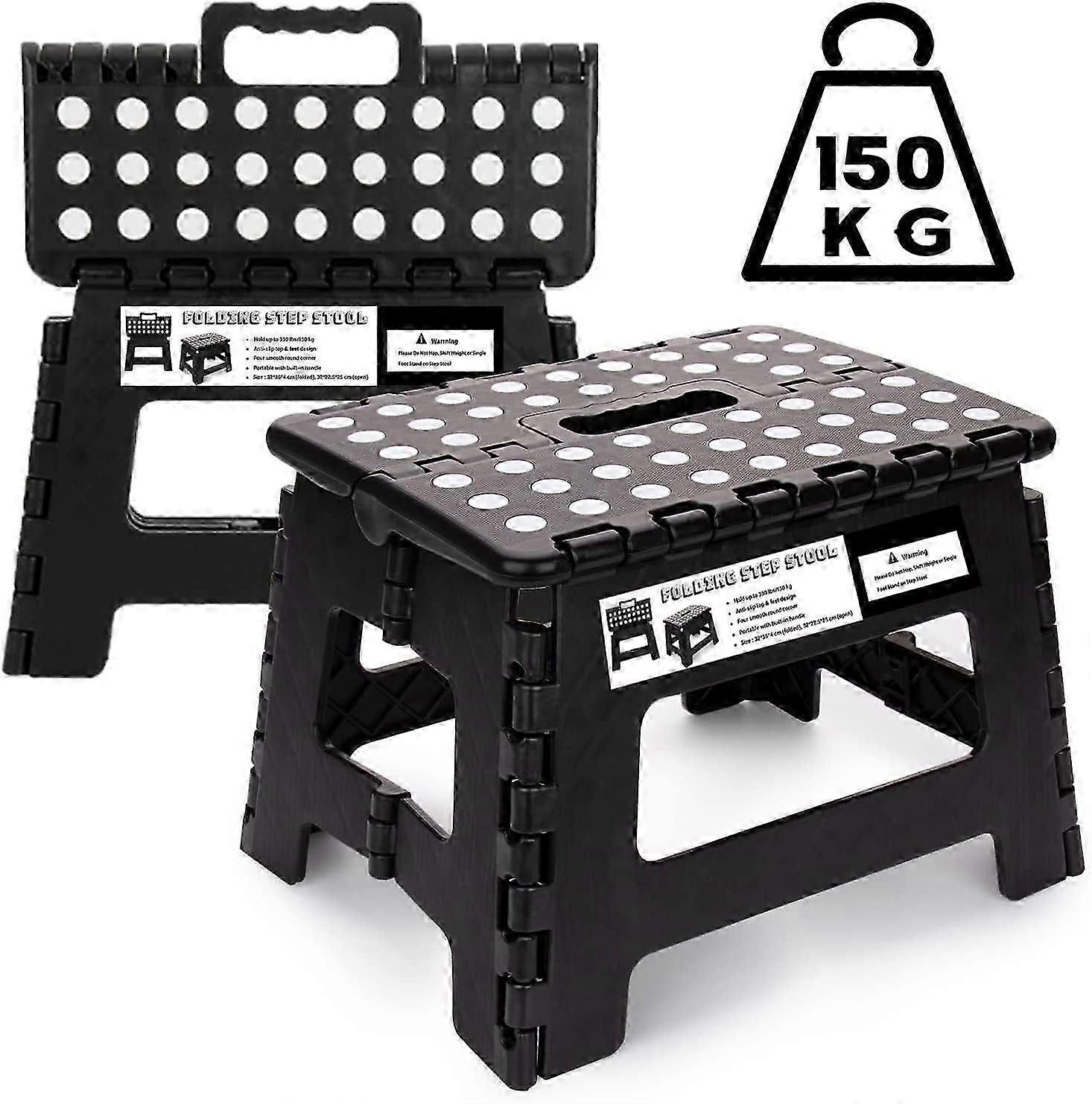 9 Inch Folding Step Stool - Heavy Duty Foldable Plastic Step Stool for Kitchen, Bathroom, Outdoor Activities (Black)