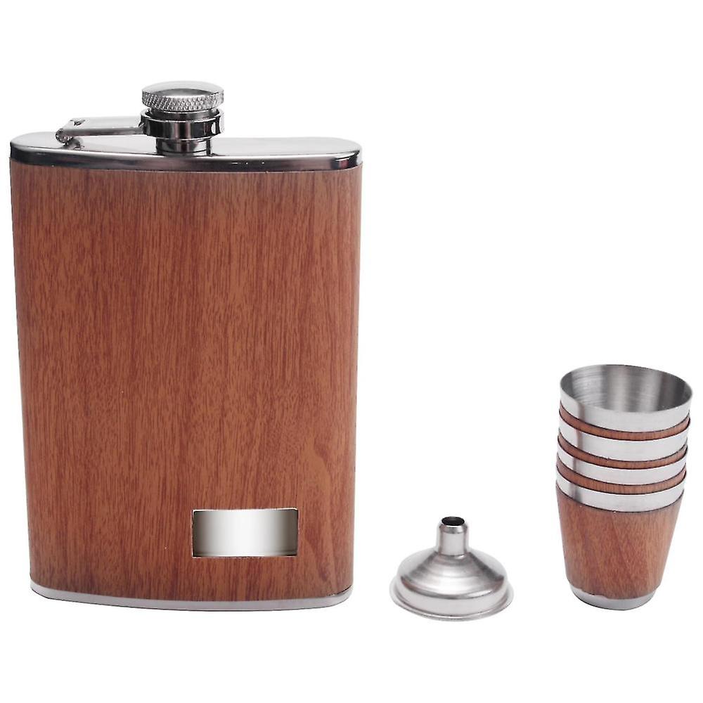 9 Oz Wooden Hip Flask Set With 1 Funnel And 4 Cups Whiskey Wine Stainless Steel Flagon Bottle Trave