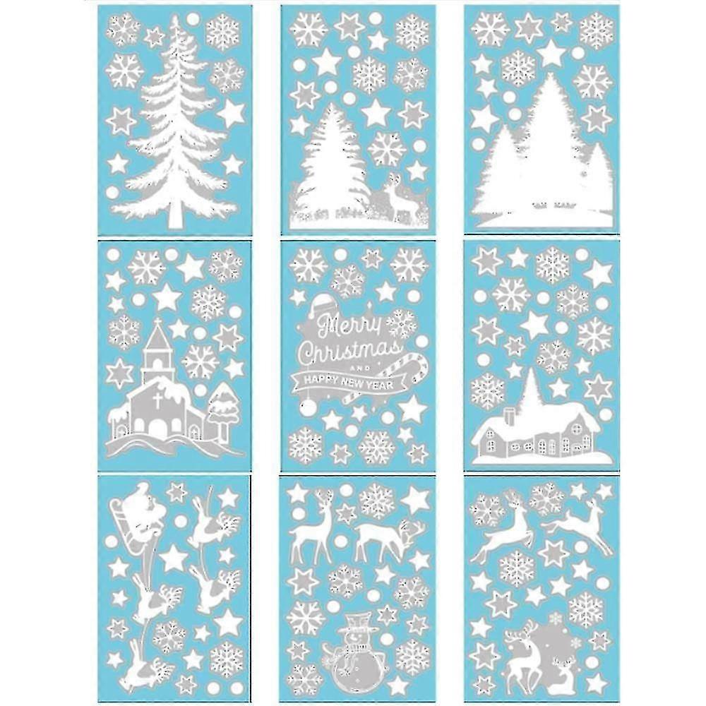 The Christmas window decoration kit includes 9 Christmas window decals. The size of each sheet of paper is 20 * 30cm. These Christmas snowflake window decorations look very beautiful.