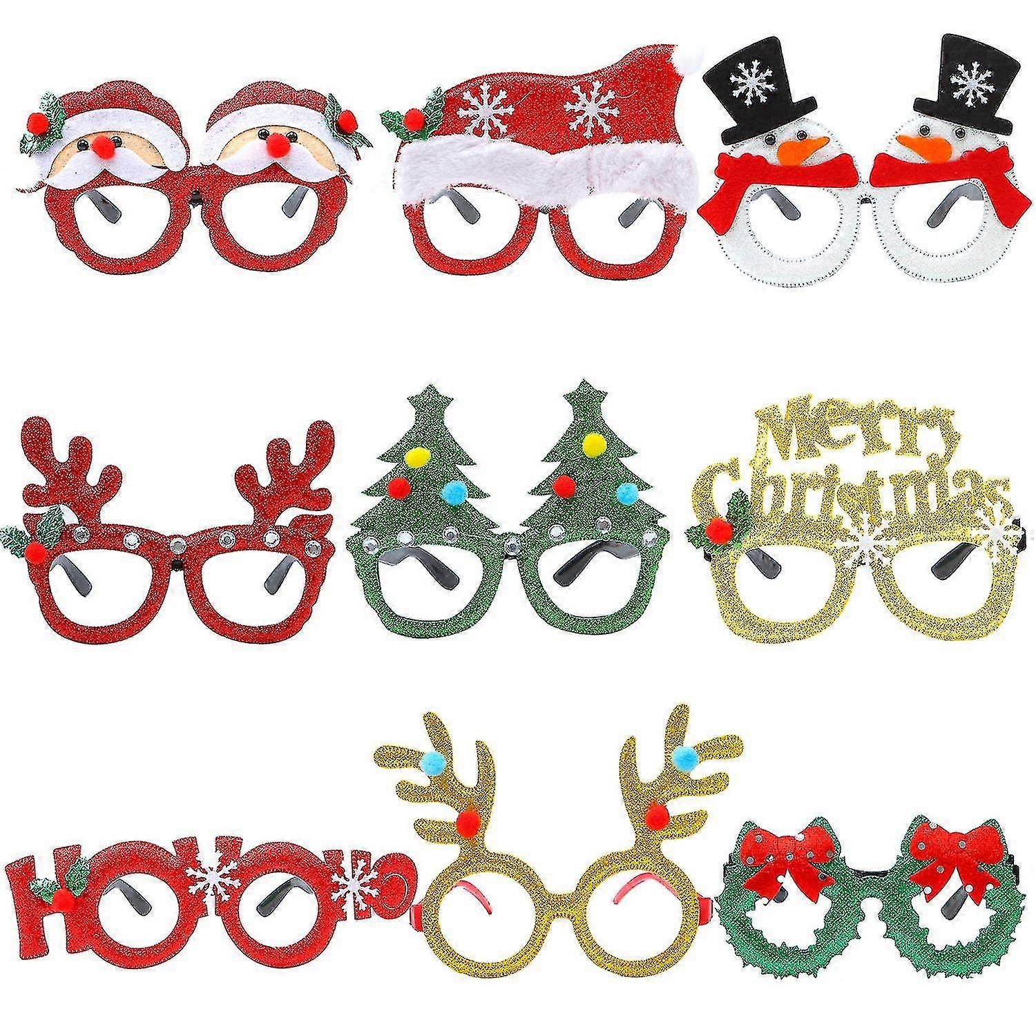 9 Pack Christmas Party Glitter Glasses Santa Snowman Antlers Glasses