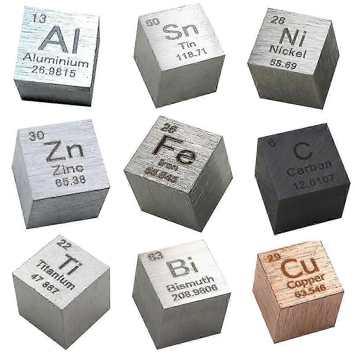 9 Piece Metal Elements Cubes Set - Density Cube Set For A Periodic Table Of Elements Collection - (0.39 Inch/10mm)