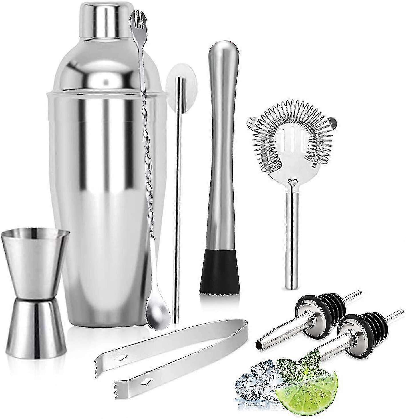 9-Piece 750ml Stainless Steel Cocktail Shaker Set for Beginners & Bartenders