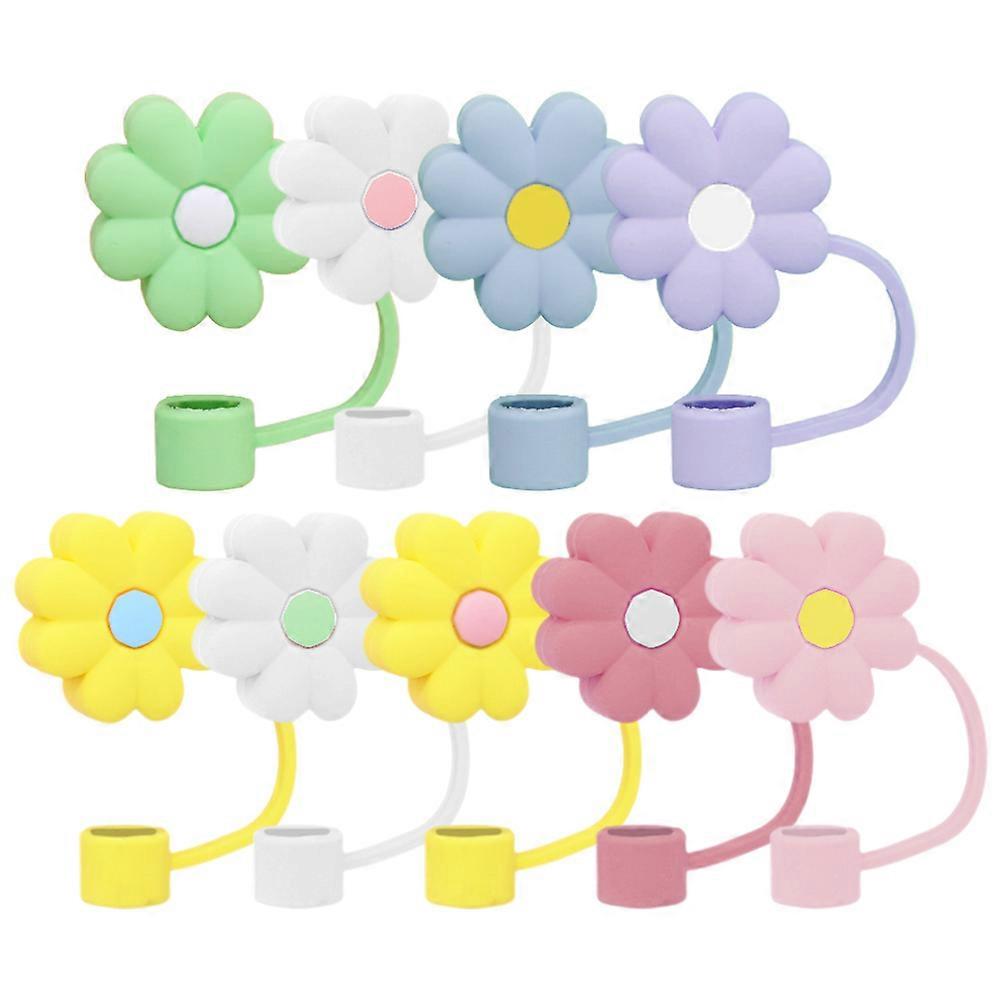 9Pcs Cute Straw Caps Flower Shaped Products For Adults Daily Use Assorted Color Practical Design