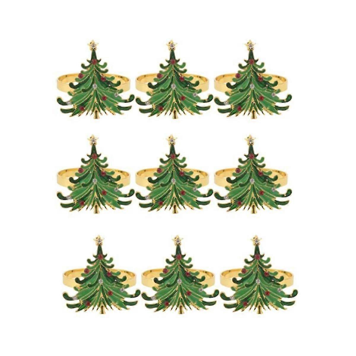 9pcs Green Chirstmas Tree Napkin Rings,golden Rings Designed With Red And For Christmas Dinning Tab