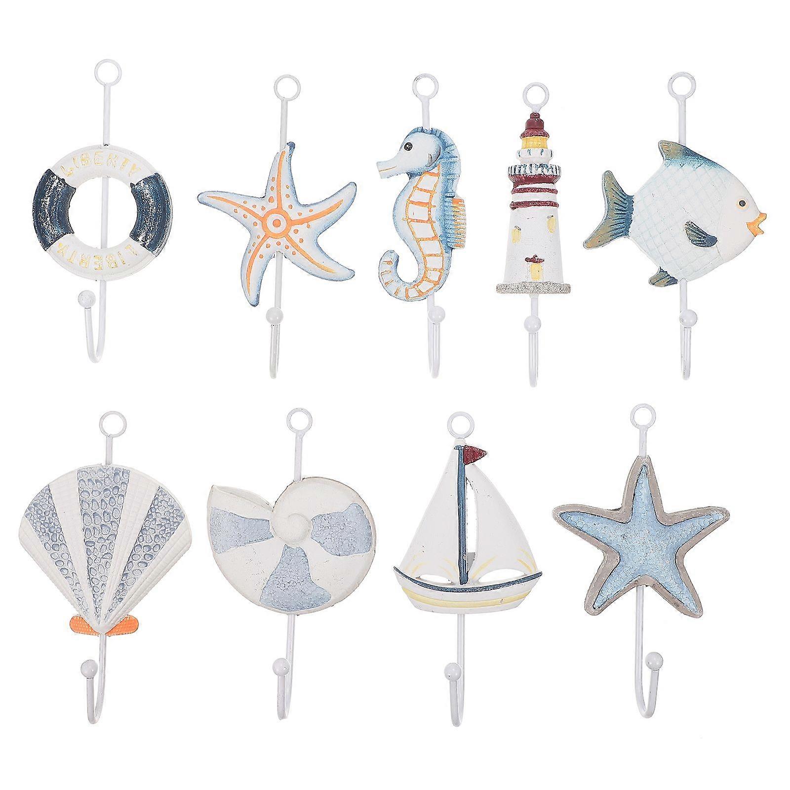 9Pcs Creative Mediterranean Style Hooks Wooden Vintage Decorative Clothes Hooks