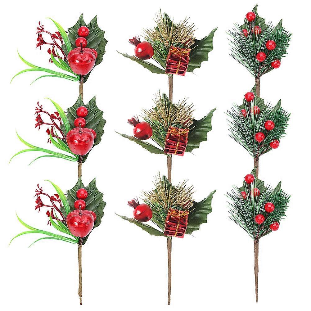 9Pcs Christmas Simulated Berry Leaf Ornament DIY Red Berry Bouquet Photo Props
