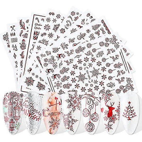 9 pcs Christmas theme nail art stickers decals new 3D snowflake elk pattern DIY decoration tools
