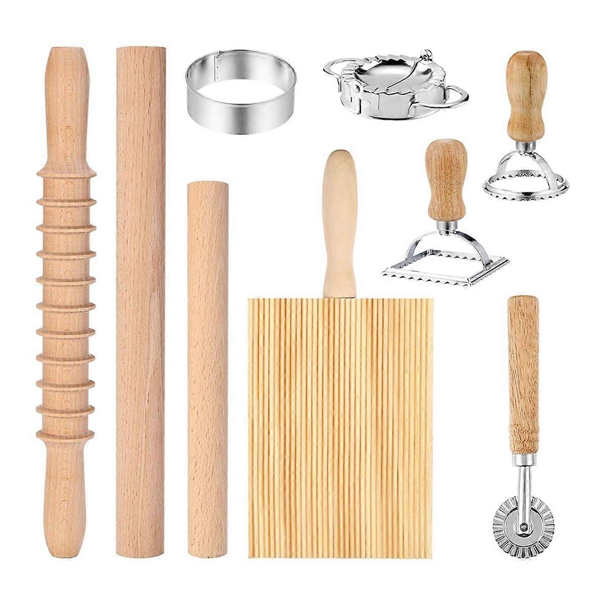 9Pcs Pasta Making Tools Set, Wooden Rolling Pin,Pastry Cutter Wheel
