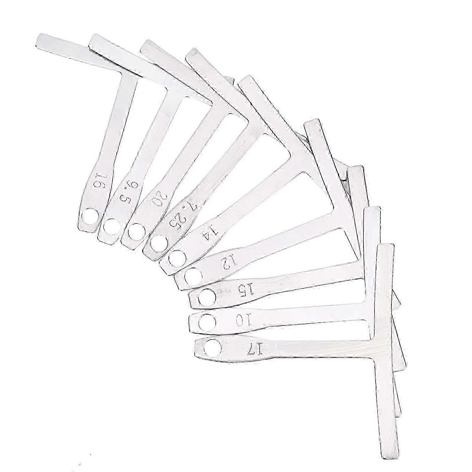 9Pcs Guitar Radius Gauge Stainless Steel T shape Ruler Fingerboard Measurement Luthier Tool(Silver )