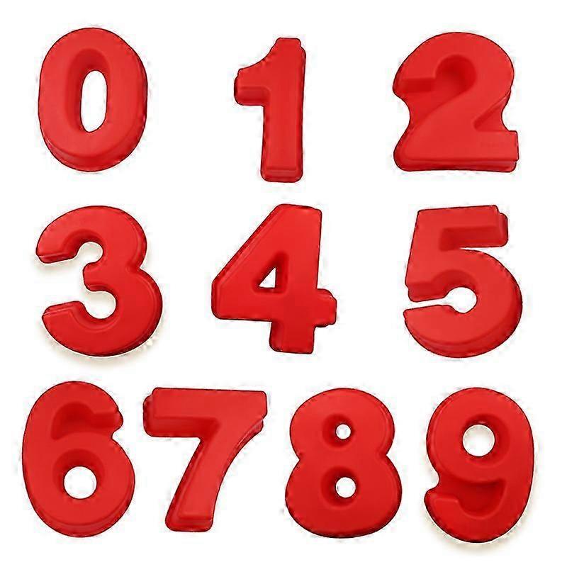9Pcs Silicone Cake Number Moulds Red Number Birthday Cake Mould Non-Stick Silicone Number Cake Pan Tin Small Size Baking Pan
