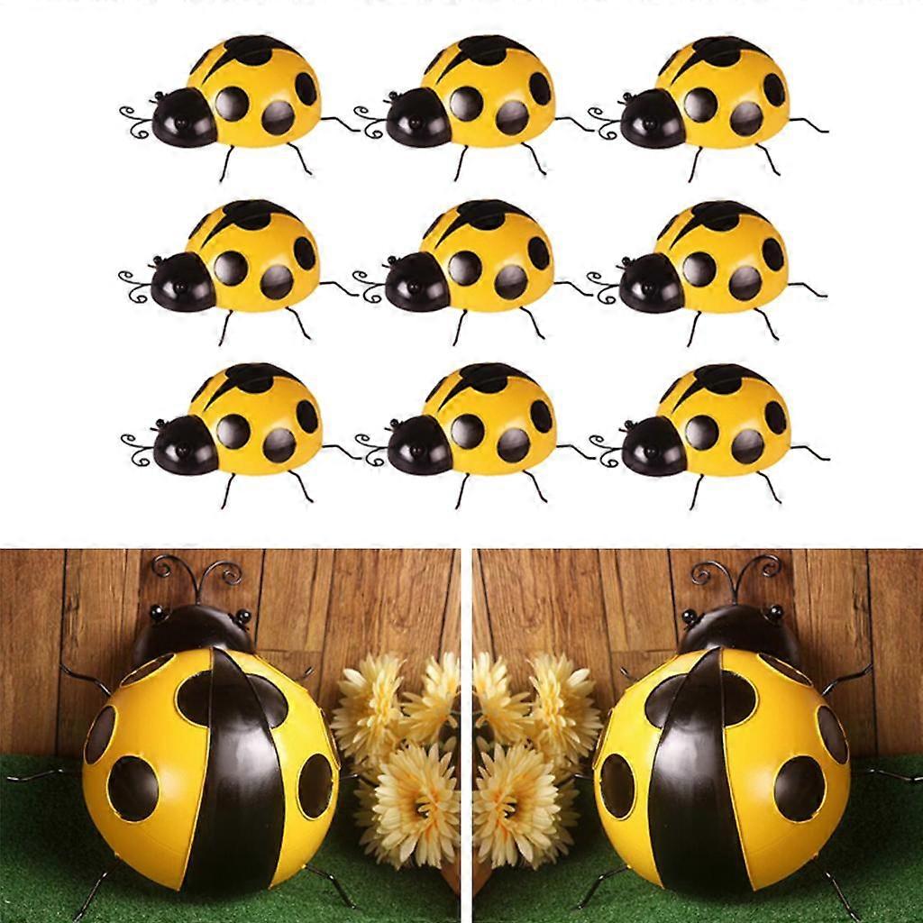 9Pcs Mini Metal Ladybug Fence Hanger Wall Hanging Garden Decor 10cm Yellow