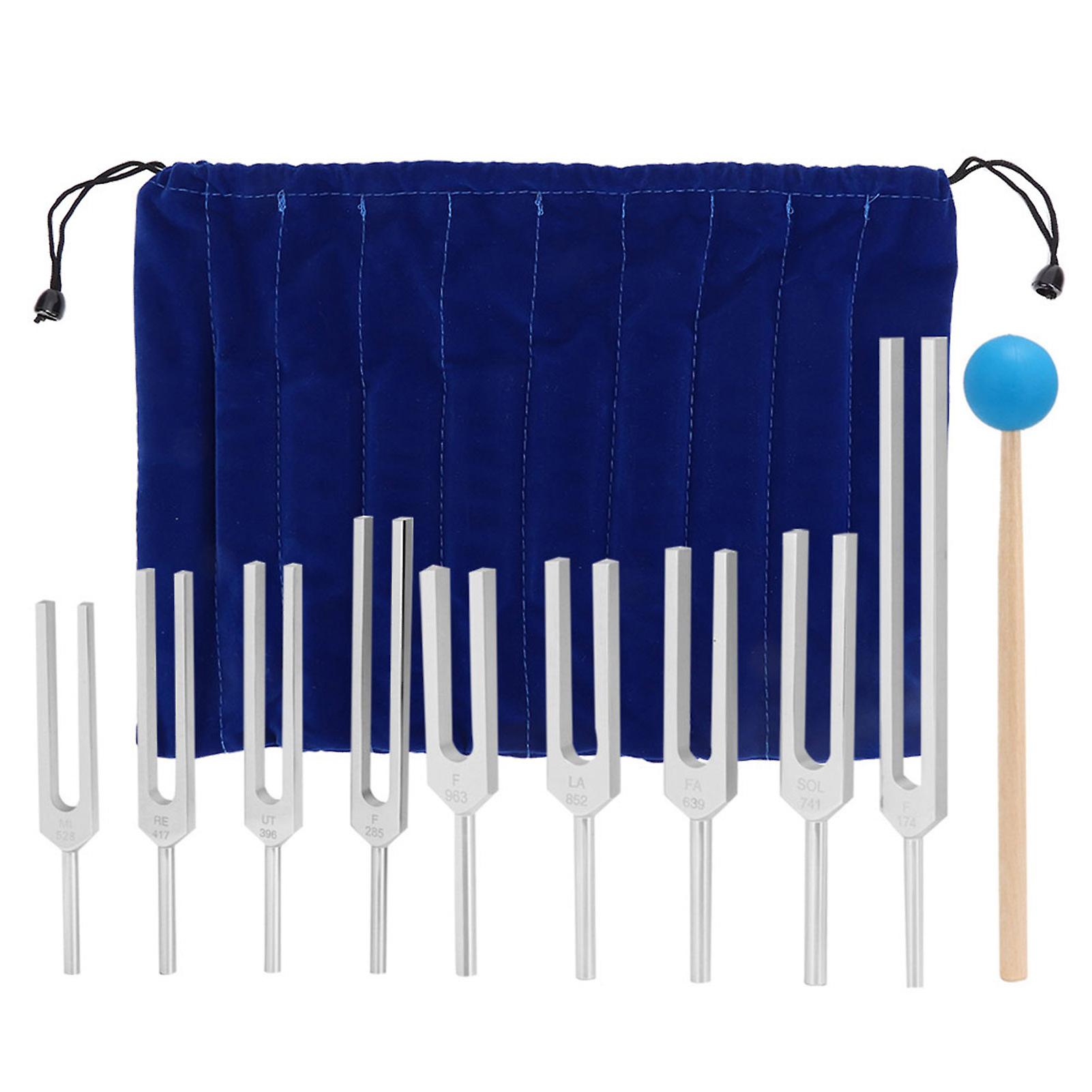 9pcs 174/ 285/ 396/ 417/ 528/ 639/ 741/ 852/ 963HZ Tuning Fork Sound Healing Therapy Tool Set