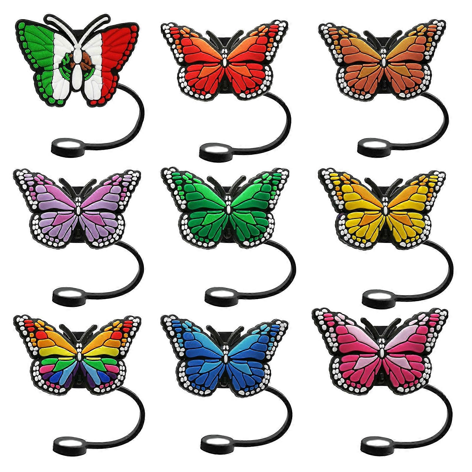 9Pcs 8mm Butterflies Straw Cover Food Grade Silicone Reusable Dust-proof Universal Glass Straw Tip Plug Topper Protector Kitchen Supplies KAESI