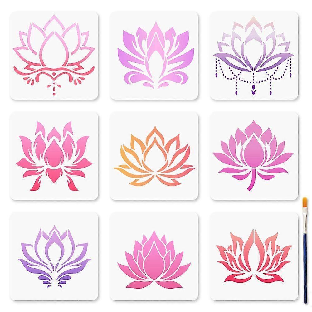 9Pcs 9 Styles PET Hollow Out Drawing Painting Stencils for DIY Scrapbook Photo Album July Lotus 150x150mm 1pc/style