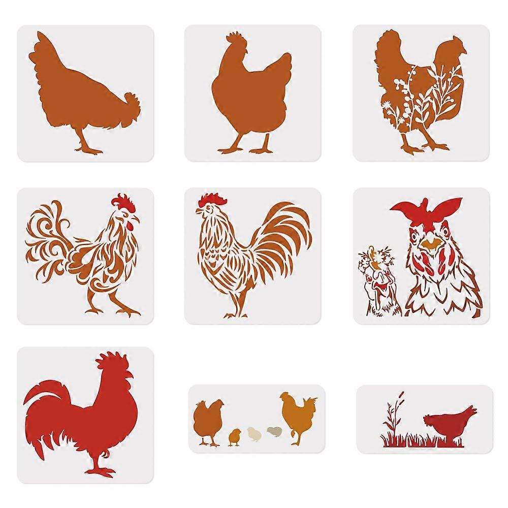 9Pcs 9 Styles PET Hollow Out Drawing Painting Stencils for DIY Scrapbook Photo Album Rooster 150~300x300mm 1pc/style