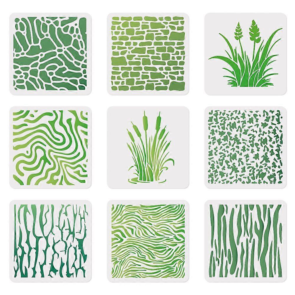 9Pcs 9 Styles PET Hollow Out Drawing Painting Stencils for DIY Scrapbook Photo Album Mixed Shapes 300x300mm 1pc/style