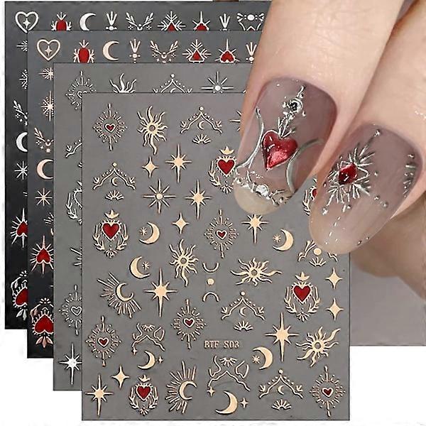 9 Sheets Moon Star Nail Art Stickers Decals Self Adhesive Pegatinas Uñas Sun Nail Supplies