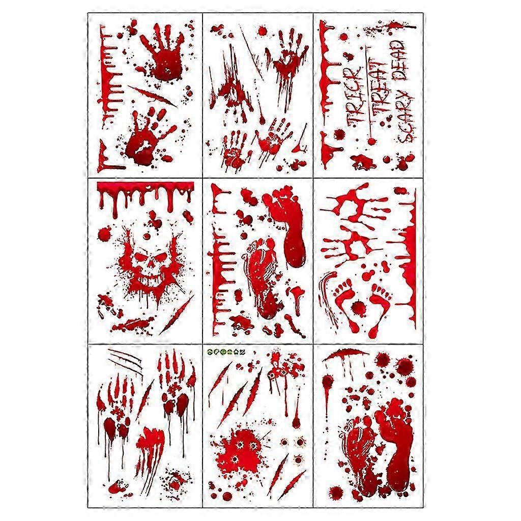 9 Sheets Halloween Fire Skull Bloody Footprints Stickers Horror Scary Zombie Party Window Wall Floor Decal Sign Clings