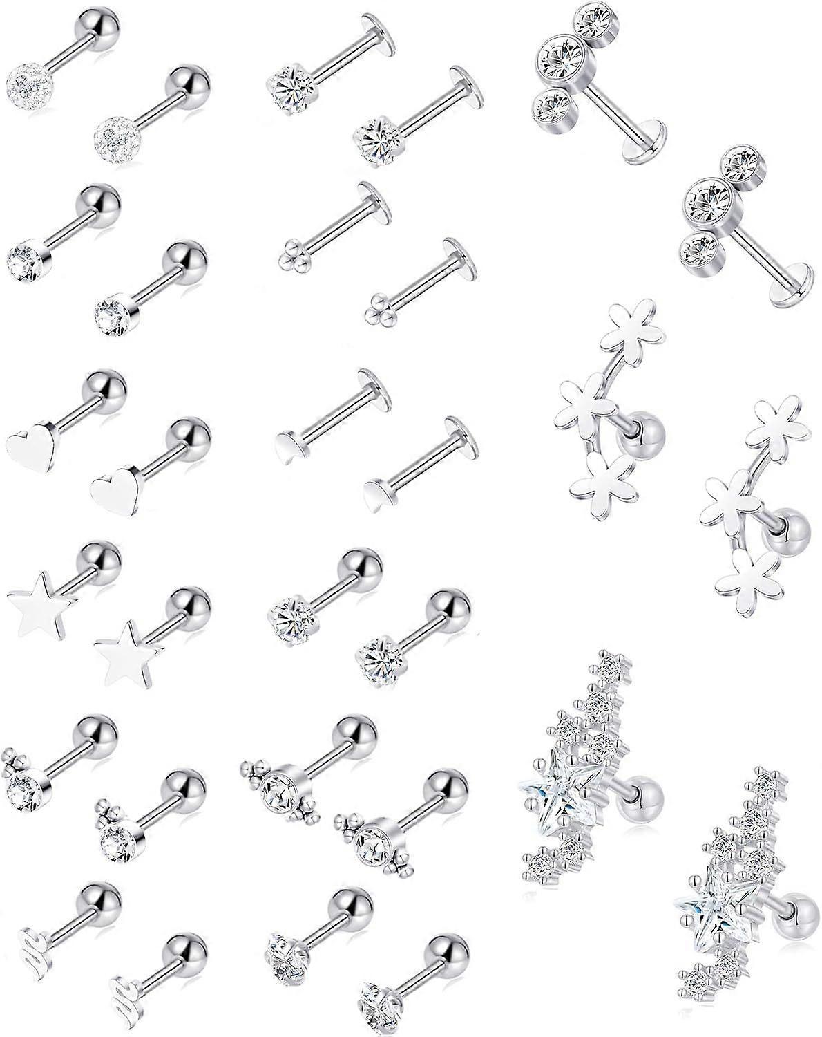 9-30Pcs Cartilage Stud Earrings Conch Forward Helix Tragus Daith Piercing Lip