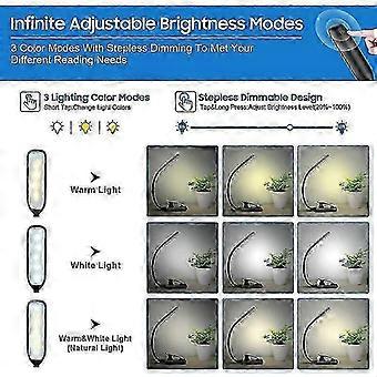 9 LED Rechargeable Reading Lamp with Touch Sensor & Stepless Dimming - 3 Color Modes Book Light in Black for Comfortable Reading