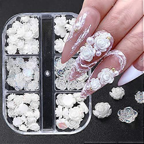 90Pcs White 3D Acrylic Flower Nail Charms 3D White Aurora Camellia Nail Art