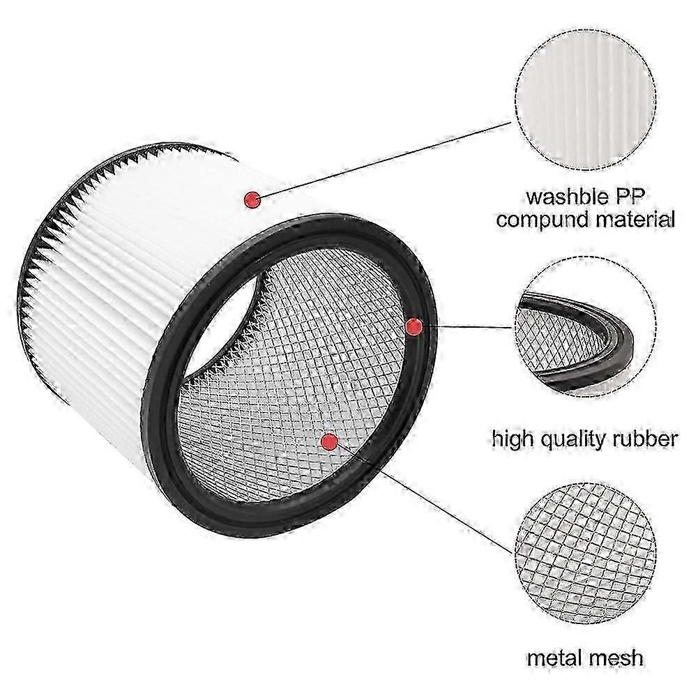 This & foam sleeve filter are fit for 5-gallon and up wet/dry vacuums SS11-450, LB650C, 4045AH, SS12-300A 800, compare to part# 90304 90585.Compare to Part # 90304, 9030400, 903-04-00, 903-04, 905-85-00, 90585, 9058500, 90585-00, 905-85.Replace the filter provides a healthy environment , and it clean the air through household dust, fine powders, and drywall and cement dust filtration.Reduce cleaning time: filter make debris handling quick and easy, reducing the time required to clean wet dry vacuum cleaners.Easy to use: easy to install, just remove the old filter and put the new filter in this location, no tools required. The vacuum cleaner would work harder when the vacuum filter is dirty, which also would increase your electricity bill. So no more waiting, just buy the replacement.Material:plasticcolour:White+blackPackage Contents:1 x Filter2 x Foam Sleeve1 x Cleaning BrushOnly the above package content, other products are not included.Note: Light reflection and different displays may cause the color of the item in the picture a little different from the real thing. The measurement allowed error is +/- 1-3cm.