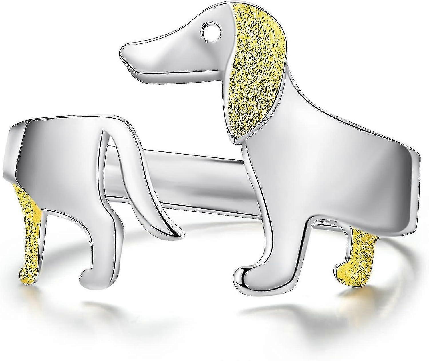 925 Sterling Silver Cute Dachshund Dog Adjustable Rings Open Rings Handmade Jewelry For Women For Gi-FCY
