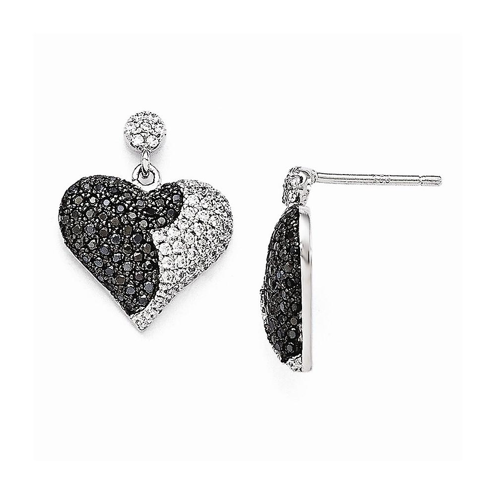 925 Sterling Silver and Cubic Zirconia Brilliant Embers Love Heart Dangle Post Earrings 19x15mm Wi-Dangle Earring for Wo