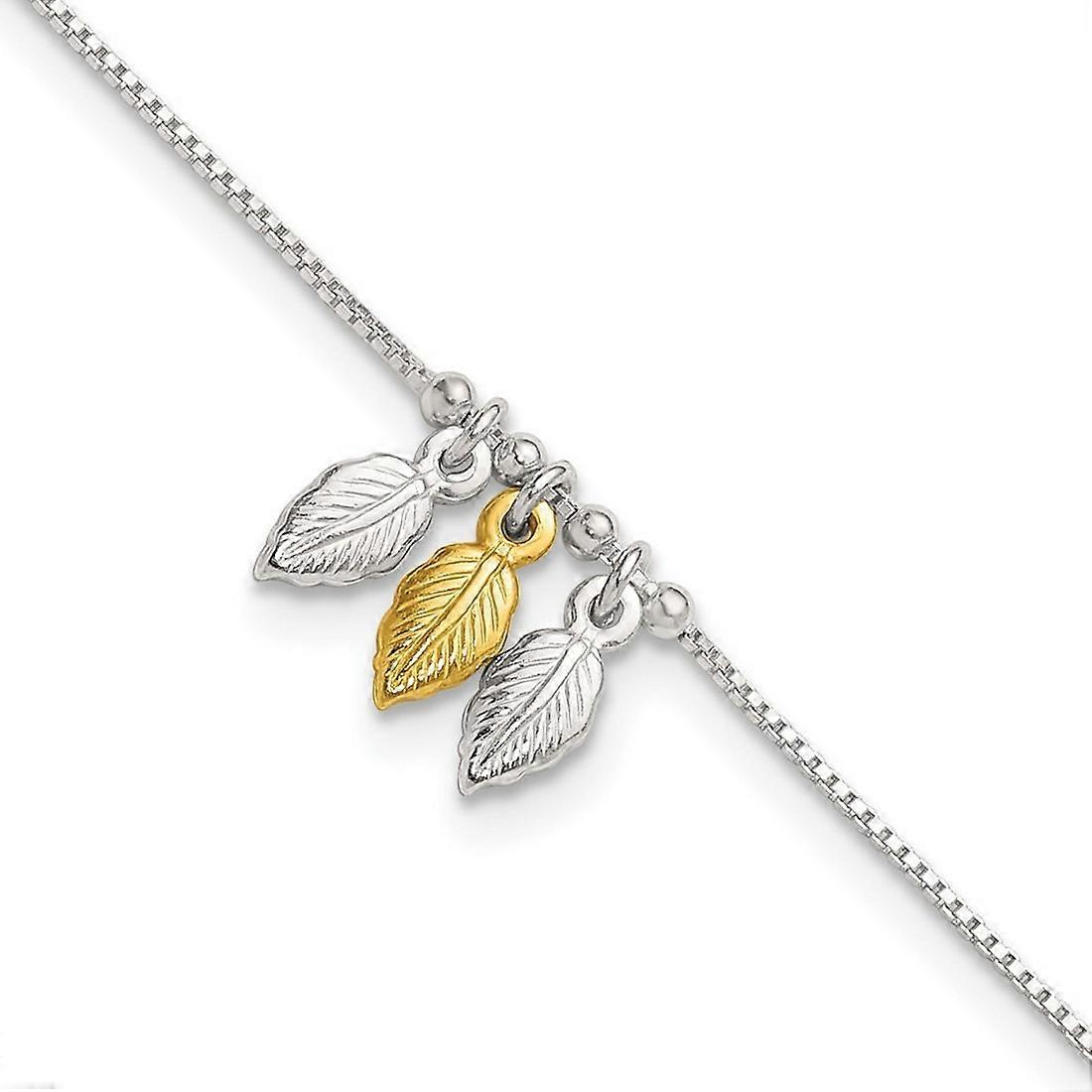 925 Sterling Silver and Gold tone Polished Beaded Feather With 1in Anklet 9 Inch 1mm Wide-Anklet for Women