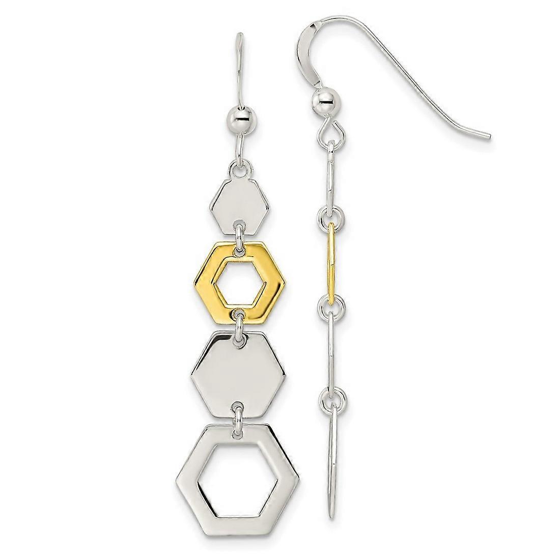 925 Sterling Silver and Gold tone Polished Hexagon Long Drop Dangle Earrings 50.11x12.65mm Wide-Dangle Earring for Women