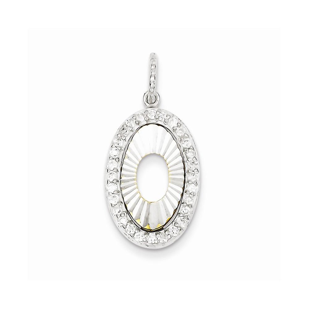 925 Sterling Silver and Flash Gold Plated Cubic Zirconia Sparkle Cut Oval Pendant Necklace 28.65x13.8mm Wide-Pendant for