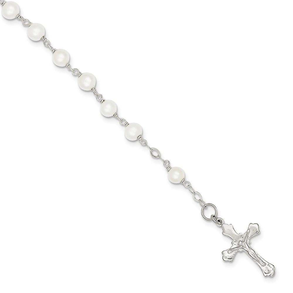 925 Sterling Silver and Fw Cultured Pearl Rosary Bracelet 16mm Wide Link-Bracelet for Women - Length: 7.5 to 8.5
