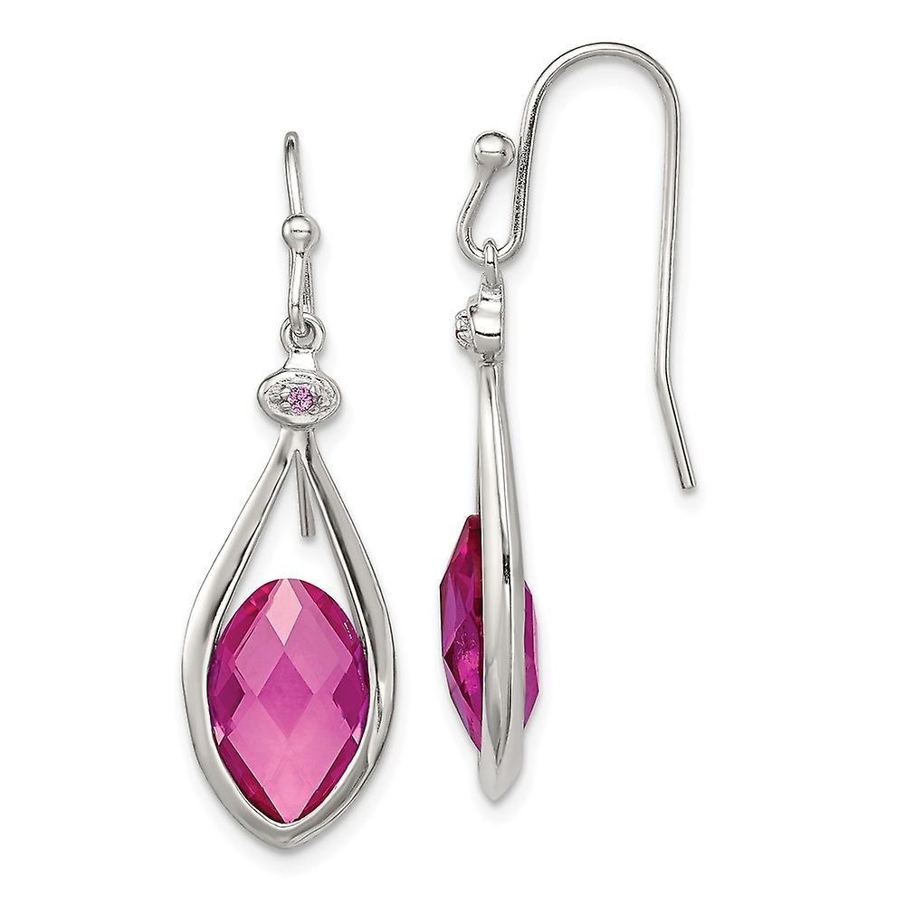 925 Sterling Silver Polished With Simulated Pink Bead Shepherd Hook Earrings 37x11mm Wide Dangle Earring for Women
