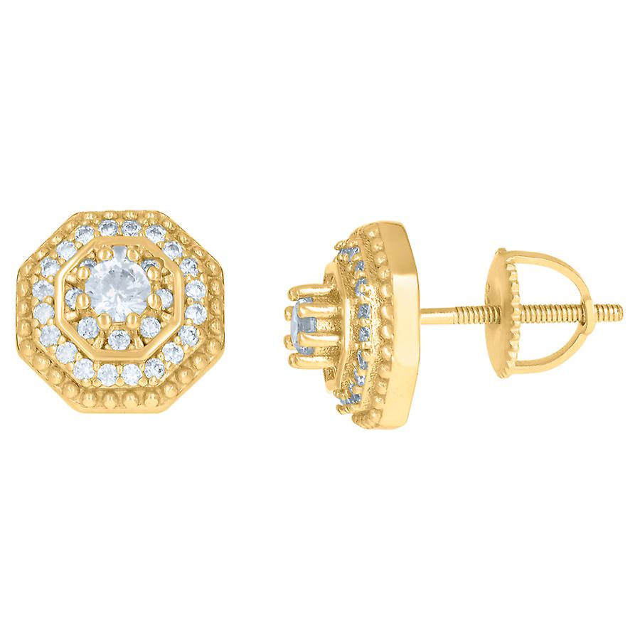 925 Sterling Silver Yellow tone Mens Cubic Zirconia Octagon Fashion Stud Earrings 9.5x9.5mm Wide Earring for Men